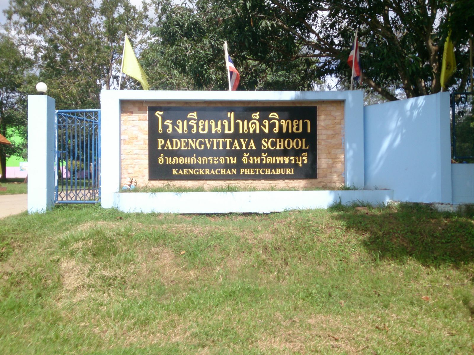 โรงเรียนบ้านป่าเด็ง สร้างขึ้นเมื่อ พ.ศ.๒๕๑๓ โดยบริษัทไทยพัสดุกรุงเทพฯ สร้างขึ้นถวายแด่พระบาทสมเด็จพระเจ้าอยู่หัว ตั้งอยู่ที่ฐาน ๗๑๓ หมู่ ๔ ต.สองพี่น้อง อ.ท่ายาง จ.เพชรบุรี ซึ่งในปัจจุบันคือ  หมู่ ๒ ต.ป่าเด็ง อ.แก่งกระจาน จ.เพชรบุรี วัตถุประสงค์ในการสร้างโรงเรียนเพื่อใช้เป็นสถานที่สอนเด็กชาวไทยภูเขา (กะเหรี่ยง) เริ่มแรกมีนักเรียนทั้งสิ้นจำนวน ๑๘ คน และมีตำรวจพลร่มเป็นครูผู้สอน