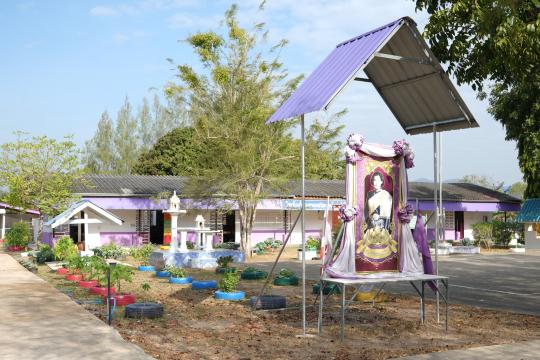ปัจจุบันโรงเรียนได้จัดแบ่งเขตเนื้อที่ให้เป็นสัดส่วนของโรงเรียนในพื้นที่ 2ไร่ 1งาน 60 ตารางวา เนื่องจากโรงเรียนกับวัดอยู่ในเขตพื้นที่ติดกันโรงเรียนได้ร่วมกับวัด ชุมชน จัดกิจกรรมที่สำคัญทางศาสนา เป็นประจำทุกปี ส่วนทางวัดเจ้าอาวาสวัดท่าวังหิน ซึ่งเป็นกรรมการสถานศึกษาขั้นพื้นฐานได้ให้ความอนุเคราะห์ ปัจจัยแก่โรงเรียนด้วยดีเสมอมา เช่น มอบปัจจัยจากงานบุญประจำปี ทุนการศึกษาแก่ให้นักเรียนเป็นประจำทุกปี