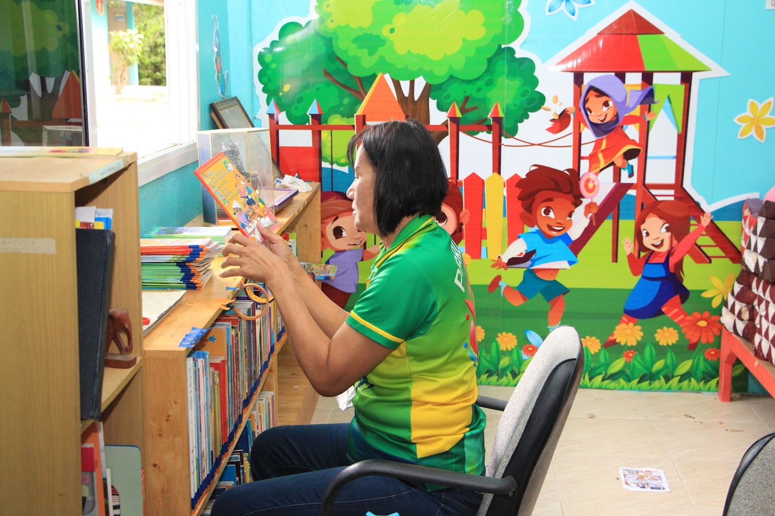 ซึ่งกิจกรรมมีการจัดภูมิทัศน์ห้องสมุด และสภาพแวดล้อมของห้องสมุด โดยมีการจัดแบ่งมุมต่างๆ เช่น มุมหนังสือราชวงศ์ มุมสมเด็จพระเทพฯ มุมหนังสือทั่วไป มุมหนังสือเยาวชน หนังสือนวนิยาย มุมอาเซียน มุมส่งเสริมสิ่งแวดล้อม เป็นต้น รวบรวม คัดแยกหนังสือให้เป็นหมวดหมู่ สื่อ อุปกรณ์ ของเล่น และมีการให้ความรู้ กฎ กติกาต่างๆ ในการให้บริการห้องสมุดให้กับคุณครูผู้รับผิดชอบในการปฏิบัติงานห้องสมุด
