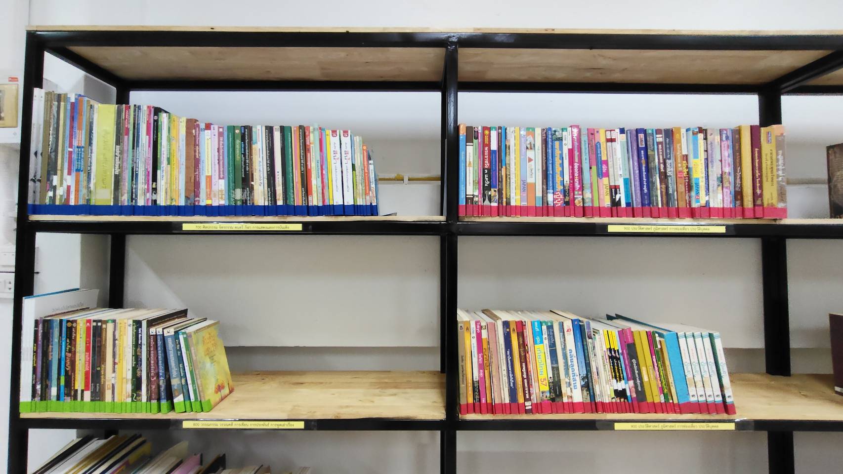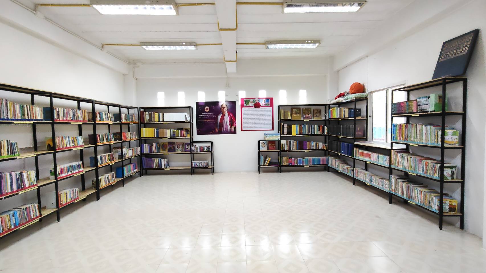 1) ด้านบรรยากาศ สภาพแวดล้อม โดยจัดแบ่งมุมต่างๆ เช่น มุมความรู้สมเด็จพระเทพรัตนราชสุดาฯ มุมหนงสือสำหรับเด็กและเยาวชน มุมหนังสืออ้างอิง มุมหนังสือนิยาย ฯ และทำป้ายหมวดหนังสือ/ป้ายชั้น/ป้ายอื่นๆ